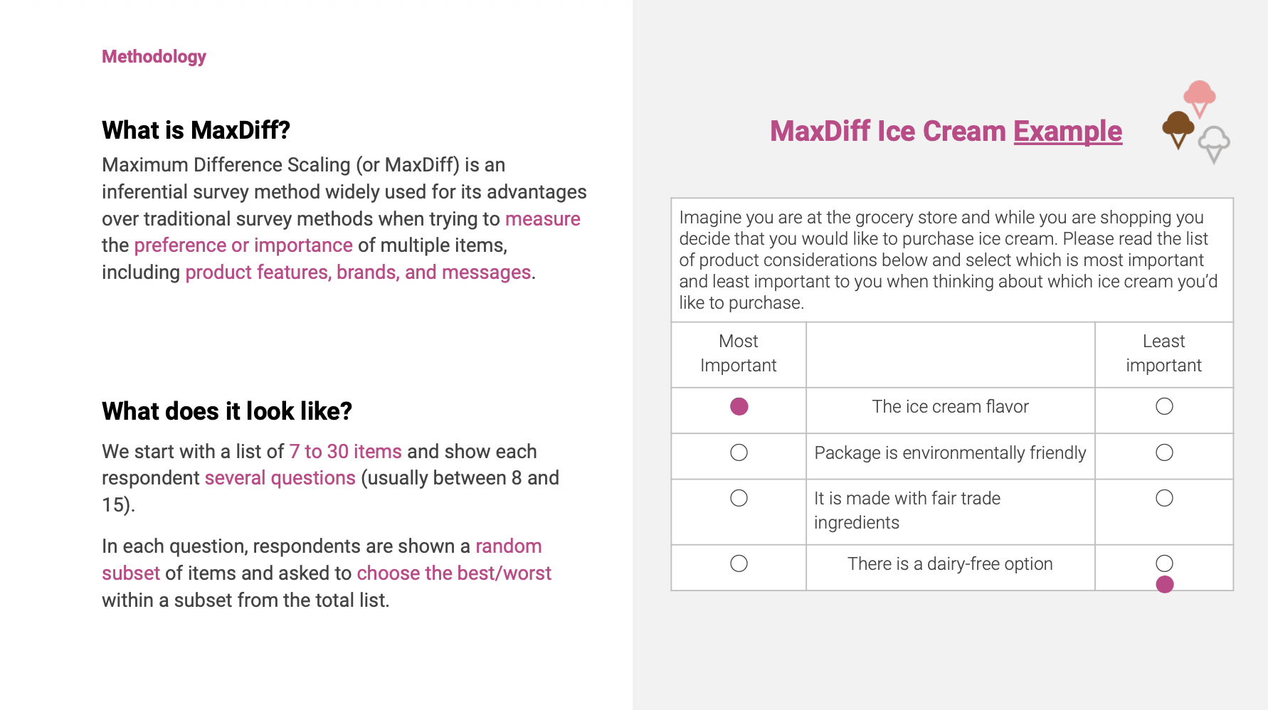 MaxDiff (Maximum Difference Scaling)